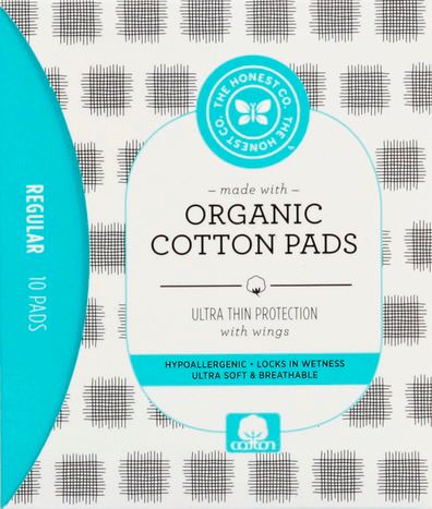 Honest Co Pads, Organic Cotton, Ultra Thin, with Wings, Regular Absorbency - 10 Pads