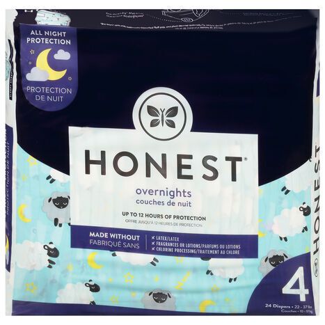 Honest Diapers, Sleepy Sheep, Overnights, Size 4 (22-37 lbs) - 24 Diapers