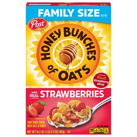 Honey Bunches of Oats Cereal, Strawberries, Family Size - 16.5 Ounces