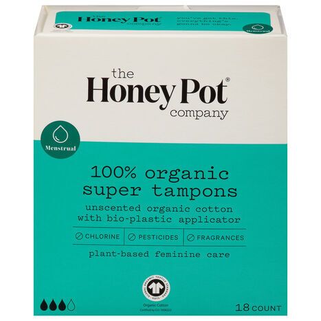Honey Pot Tampons, 100% Organic, Unscented, Super - 18 Tampons