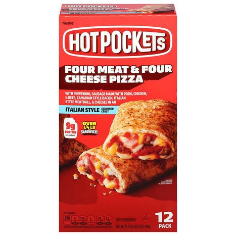 Hot Pockets Italian Style Seasoned Crust Four Meat & Four Cheese Pizza Sandwiches - 12 Pack