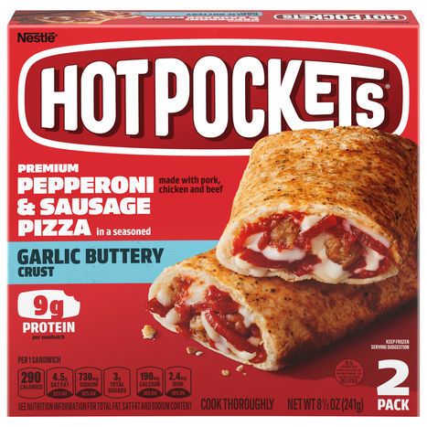 Hot Pockets Sandwiches, Premium Pepperoni & Sausage Pizza, 2 Pack - 2 Pack