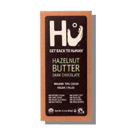The folks at Hu Kitchen believe in healthy snacking with ingredients that are real, simple and fuel for your body, nothing processed or artificial. Their organic chocolate bars are made with fair trade certified ingredients that are also vegan, gluten-free, kosher and paleo-friendly. Enjoy the rich taste of hazelnut butter and organic ingredients like cacao, unrefined coconut sugar and cocoa butter. Perfect for satisfying that sweet-tooth anywhere, anytime. Organic Cacao, Unrefined Organic Coconut Sugar, Hazelnut, Organic Fair-Trade Cocoa Butter.