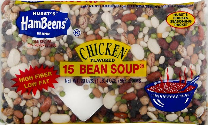 Contains 15 of These Varieties: Northern, Pinto, Large Lima, Yelloweye Bean, Garbanzo, Baby Lima, Green Split Pea, Kidney, Cranberry Bean, Small White, Pink Bean, Small Red, Yellow Split Pea, Lentil, Navy, White Kidney, Black Bean. Seasoning Packet: Hydrolyzed Soy Protein, Salt, Sugar, Maltodextrin, Spices and Spice Extractives, Citric Acid, Dehydrated Onion, Silicon Dioxide (Added Less than 2% as an Anti-Caking Agent).
