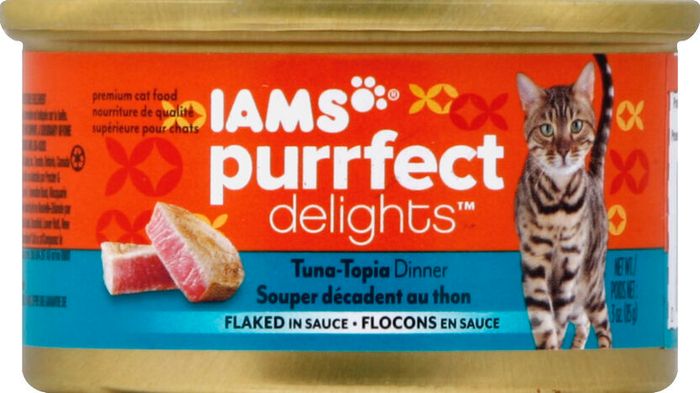 IAMS Cat Food, Premium, Tuna-Topic Dinner, Flaked in Sauce - 3 Ounces