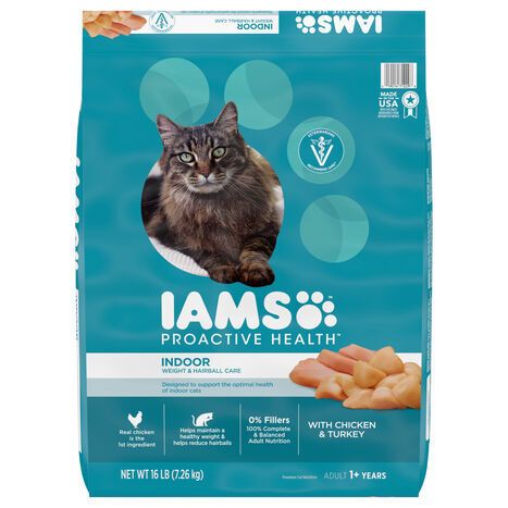 IAMS Premium Adult 1+ Years Indoor Weight & Hairball Care with Chicken & Turkey Cat Nutrition - 16 Pounds