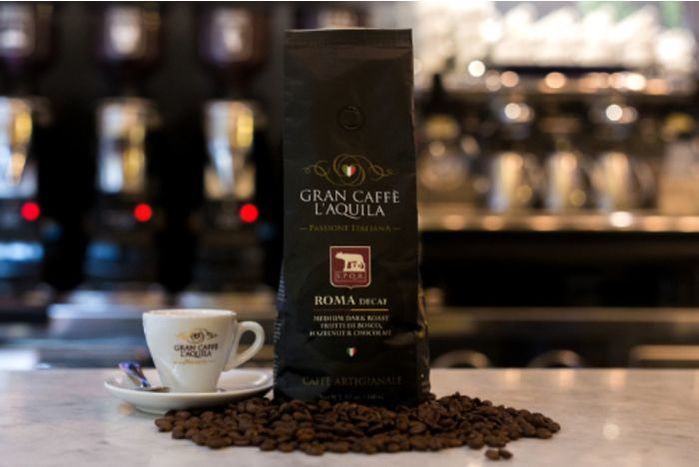 A decaf Coffee lovers dream Caffè! Enjoy the rich flavor of Gran Caffè L’Aquila’s Roma Decaf blend featuring an organic & Fair Trade central Italian blend decaffeinated utilizing the all natural Swiss Water Method .