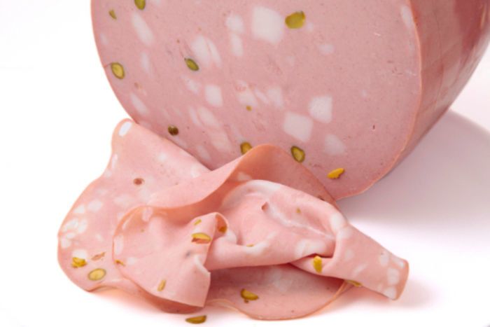 Classic Mortadella, imported from Italy, is made with 100 percent pork and studded with pistachios. Silky in texture, this mortadella is slightly sweet, not too fatty, and uniformly pink in color. Mortadella has a distinctive aromatic scent and a characteristic taste.