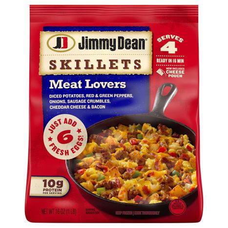 Diced potatoes, red & green peppers, onions, sausage crumbles & bacon. 10 g protein per serving. Contains bioengineered food ingredients. New! Serves 4. Ready in 15 min. Your satisfaction is important to us: If you have any question, call our customer hotline at 1-800-925-Dean. Or write us: Tyson Customer Relations, P.O. Box 2020 Springdale, AR 72765. Visit us at www.jimmydean.com. Find great recipes, information about our products and food tips too! For additional recipes and alternate preparation methods visit: www.jimmydean.com. We're committed to providing you with the best-tasting Jimmy Dean Brand products, with quality you can trust. US inspected and passed by Department of Agriculture. www.jimmydean.com. how2recycle.info. how2recycle.info.