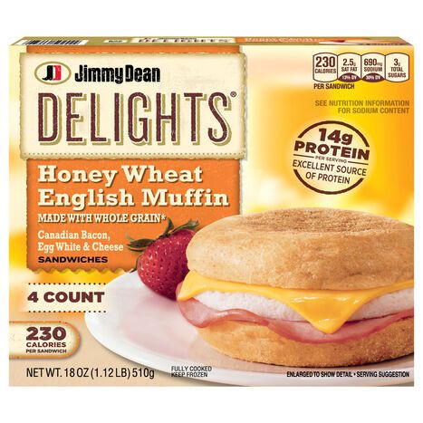 Jimmy Dean Sandwiches, Canadian Bacon, Egg White & Cheese, Honey Wheat English Muffin - 4 Sandwiches