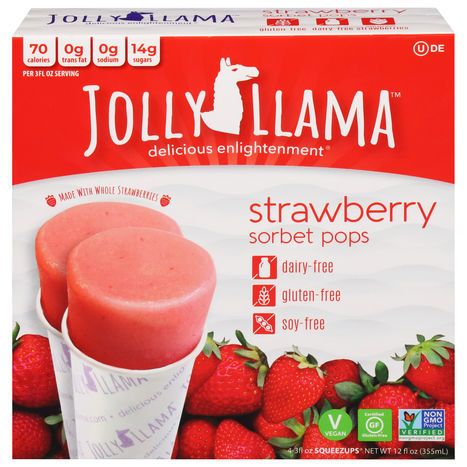 Jolly Llama Sorbet Pops, Strawberry - 4 x 3 Fluid Ounces