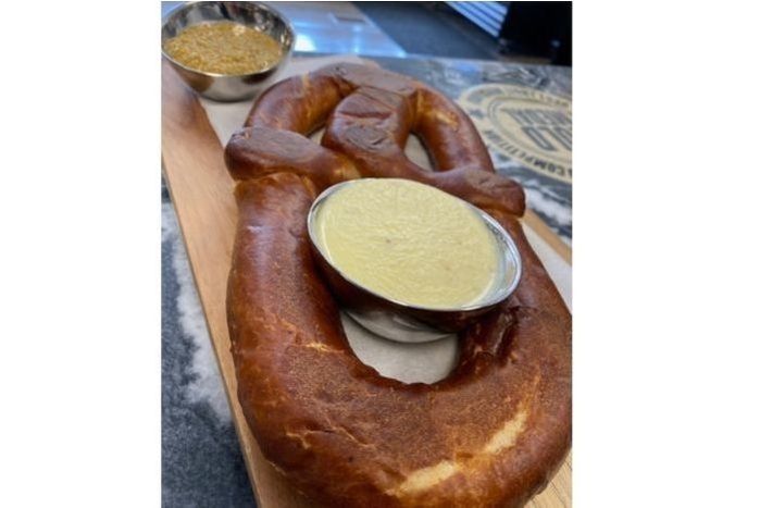 Jumbo Soft Pretzel with Old Brooklyn Pub Cheese & Old Brooklyn Mustards Bohemian Blend