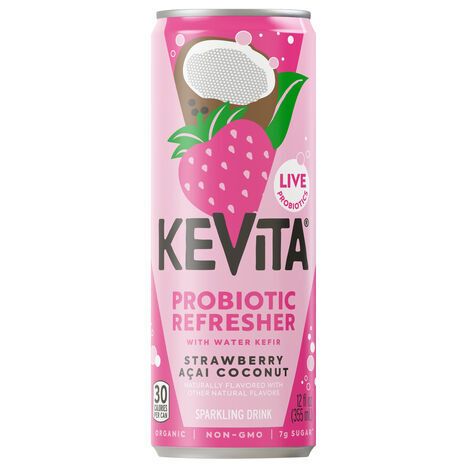 KeVita Probiotic Refresher with Water Kefir Strawberry Acai Coconut Sparkling Drink - 12 Fluid Ounces