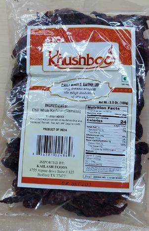 Khushboo Dry Whole Kashmiri Chillies - 100 Grams