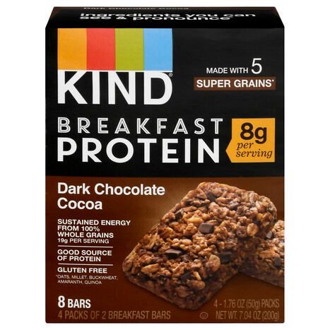 KIND Breakfast Protein Bars, Dark Chocolate Cocoa - 4 x 1.76 Ounces