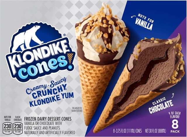 Klondike Cones! Nuts for Vanilla/Classic Chocolate Frozen Dairy Dessert Cones - 8 x 3.75 Fluid Ounces