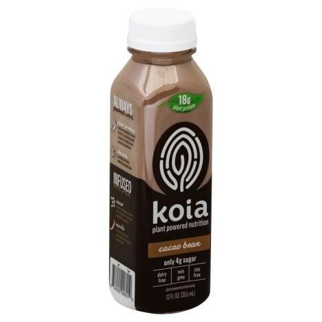 Almond Milk (Filtered Water, Almonds), Koia Proprietary Protein Blend (Brown Rice Protein, Pea Protein, Hemp Protein), Chicory Root Fiber, Cocoa Powder, Organic Cane Sugar, Natural Flavors, Sunflower Lecithin, Sea Salt, Vanilla Extract, Cocoa Extract, Monk Fruit Extract, Locust Bean Gum, Gellan Gum and Cinnamon.