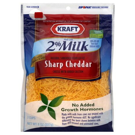 Reduced Fat Cheddar Cheese (Pasteurized Part-Skim Milk, Cheese Culture, Salt, Enzymes, Annatto (Color), Vitamin A Palmitate), Calcium Sulfate, Potato Starch and Cellulose Powder Added to Prevent Caking, Natamycin (a Natural Mold Inhibitor).
