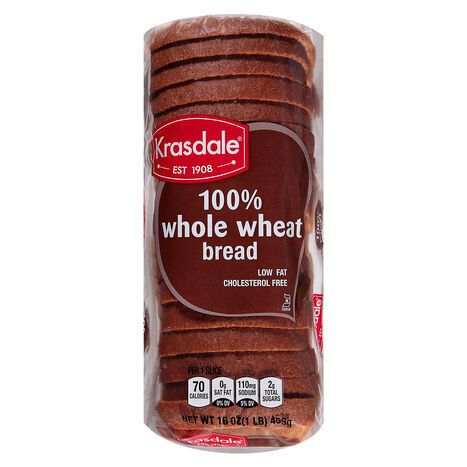 Krasdale Bread, 100% Whole Wheat - 16 Ounces