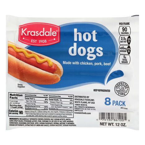 Krasdale Hot Dogs, 8 Pack - 8 x 12 Ounce Pack