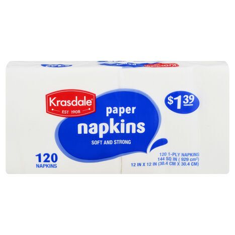 Krasdale Paper Napkins, Soft And Strong, 1-Ply - 120 Napkins