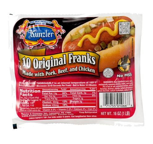 Meat Ingredients (Pork, Beef), Mechanically Separated Chicken, Water, Corn Syrup, 2% or less of: Salt, Potassium Lactate, Natural Flavorings, Dextrose, Paprika, Sodium Phosphates, Sodium Diacetate, Sodium Erythorbate, Sodium Nitrite.