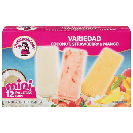 La Michoacana Ice Cream Bars, Coconut, Strawberry & Mango, Mini - 12 Bars