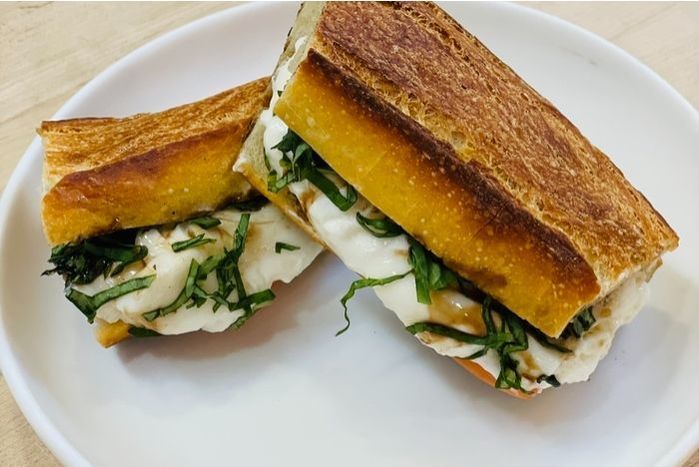 Tomatoes, Basil, Burrata, Balsamic Glaze, Baguette