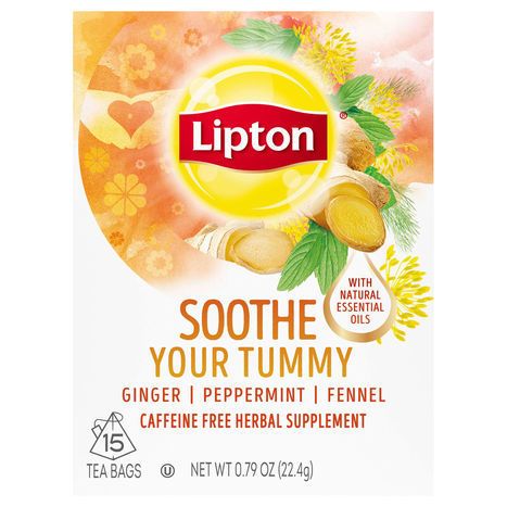 Lipton Herbal Supplement, Caffeine Free, Soothe Your Tummy, Tea Bags - 15 Tea Bags