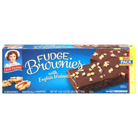 Little Debbie Brownies with English Walnuts, Fudge, Big Pack - 12 Brownies