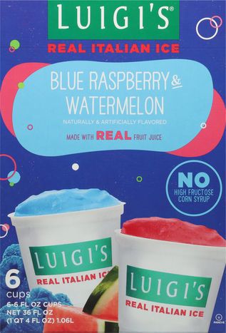 Luigi's Real Italian Ice, Blue Raspberry & Watermelon - 6 x 6 Fluid Ounce Cups