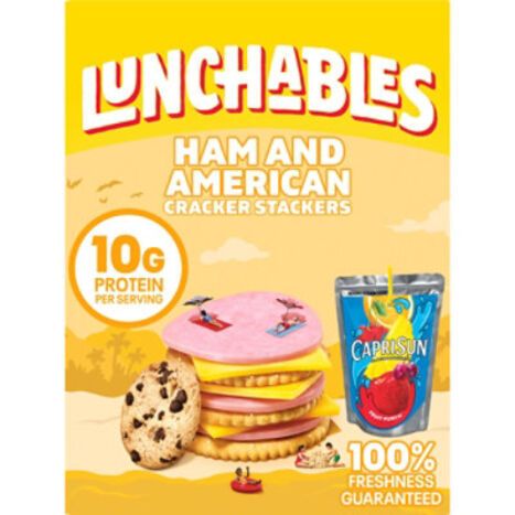 FRUIT PUNCH FLAVORED JUICE DRINK BLEND FROM CONCENTRATE (FILTERED WATER; SUGAR; PEAR, GRAPE AND ORANGE JUICE CONCENTRATES; MONK FRUIT CONCENTRATE; CITRIC ACID; APPLE AND PINEAPPLE JUICE CONCENTRATES; NATURAL FLAVOR, MUSHROOM EXTRACT [TO PROTECT QUALITY]); COOKED HAM - WATER ADDED - CHOPPED AND FORMED - SMOKE FLAVOR ADDED (HAM, WATER, CONTAINS LESS THAN 2% OF SODIUM LACTATE, SALT, MODIFIED CORNSTARCH, POTASSIUM SALTS, SODIUM PHOSPHATES, SUGAR, SODIUM DIACETATE, SODIUM ASCORBATE, SODIUM NITRITE, FLAVOR, SMOKE FLAVOR); CHOCOLATE CHIP COOKIE (UNBLEACHED ENRICHED FLOUR [WHEAT FLOUR, NIACIN, REDUCED IRON, THIAMINE MONONITRATE, RIBOFLAVIN, FOLIC ACID], SEMISWEET CHOCOLATE CHIPS [SUGAR, CHOCOLATE, COCOA BUTTER, DEXTROSE, MILK, SOY LECITHIN, VANILLIN], SUGAR, CANOLA OIL, PALM OIL, HIGH FRUCTOSE CORN SYRUP, LEAVENING [BAKING SODA, AMMONIUM PHOSPHATE], SALT, NATURAL FLAVOR), CONTAINS: WHEAT, MILK, SOY; AMERICAN PASTEURIZED PREPARED CHEESE PRODUCT (MILK, WATER, MILKFAT, MILK PROTEIN CONCENTRATE, WHEY, WHEY PROTEIN CONCENTRATE, SODIUM CITRATE, SALT, LACTIC ACID, SORBIC ACID AS A PRESERVATIVE, CHEESE CULTURE, ENZYMES, OLEORESIN PAPRIKA [COLOR], ANNATTO [COLOR], WITH SUNFLOWER LECITHIN ADDED FOR SLICE SEPARATION), CONTAINS: MILK; CRACKERS (ENRICHED FLOUR [WHEAT FLOUR, NIACIN, REDUCED IRON, THIAMINE MONONITRATE, RIBOFLAVIN, FOLIC ACID], PALM OIL, SUGAR, SALT, BAKING SODA, WHEY [FROM MILK], SOY LECITHIN, NATURAL FLAVOR), CONTAINS: WHEAT, SOY, MILK.