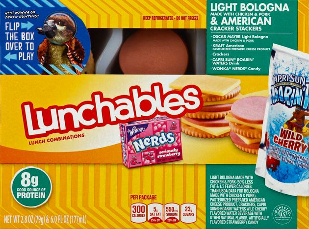 Cherry Flavored Water Beverage with Other Natural Flavor - Water, High Fructose Corn Syrup, Citric Acid, Sucralose (Splenda® Brand Sweetener), Natural Flavor. Light Bologna - Made with Chicken and Pork - Mechanically Separated Chicken, Water, Pork, Corn Syrup, Modified Food Starch†, contains less than 2% of Salt, Potassium Chloride, Sodium Phosphates, Sodium Propionate, Sodium Diacetate, Sodium Benzoate, Sodium Ascorbate, Flavor, Sodium Nitrite, Extractives of Paprika, Oleoresin Celery Seed. †Exceeds amount permitted in regular Bologna. Pasteurized Prepared American Cheese Product - Milk, Water, Milkfat, Milk Protein Concentrate, Whey, Whey Protein Concentrate, contains less than 2% of Sodium Citrate, Salt, Lactic Acid, Sorbic Acid as a preservative, Cheese Culture, Enzymes, Oleoresin Paprika (Color), Annatto (Color), with Starch added for Slice Separation. Crackers - Enriched Wheat Flour (Wheat Flour, Niacin, Reduced Iron, Thiamine Mononitrate, Riboflavin, Folic Acid), Vegetable Shortening (Soybean Oil, Partially Hydrogenated Cottonseed Oil with TBHQ and Citric Acid added to help Flavor), Sugar, Leavenings (Baking Soda and/or Monocalcium Phosphate), Salt, Whey (from Milk), Soy Lecithin, Natural Flavor, Enzymes. Crisp Wafers in Milk Chocolate - Sugar; Wheat Flour; Nonfat Milk; Cocoa Butter; Chocolate; Palm Kernel Oil; Lactose (Milk); Milk Fat; contains 2% or less of: Soy Lecithin; PGPR, Emulsifier; Yeast; Vanillin, Artificial Flavor; Salt; Sodium Bicarbonate.