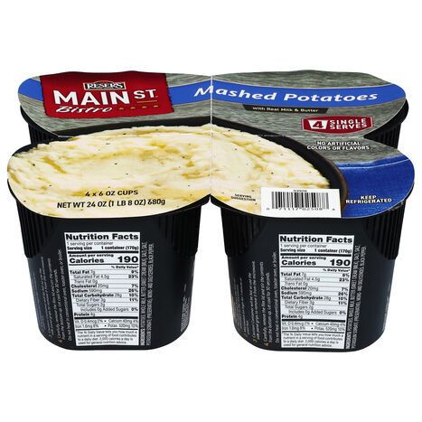 Main St Bistro Mashed Potatoes, with Real Milk & Butter - 4 x 6 Ounce Cups