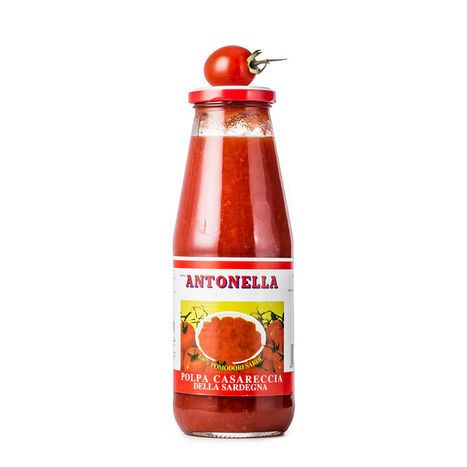 Fine pulp tomatoes or Polpa di pomodoro extrafine in Italian, is produced by Marca Antonella and it is made only with Sardinian tomatoes. These fresh finely chopped tomatoes have a bright red color and they are sweet, tasty and completely natural.\n\nEnjoy this delicious Sardinian tomato pulp with extra virgin olive oil for your next pasta dish or pizza! It can be used as a tomato base for your fish or meat Ragu'.\n\nIngredients: Tomatoes, Tomato Concentrate, Salt.\n\nCompany History: \nAntonella has been growing and bottling their tomatoes on the Italian island of Sardegna for more than 40 years. Thanks to the Sardinian microclimate and rich soil the tomatoes are sweet and delicate with very low acidity.