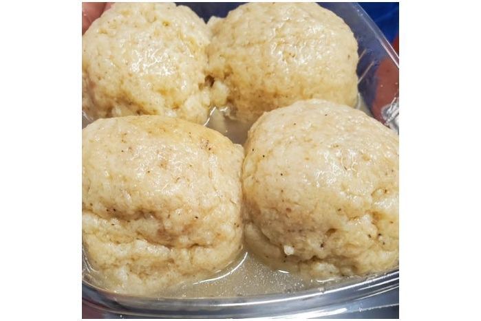 Four Gluten-free Matzo-Balls, frozen. They are in their own cooking brine, NOT in soup, so after heating take them out of the liquid so you do not dilute your soup.