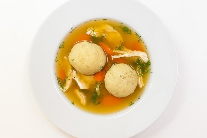Matzoh Ball Soup with Chunks of Chicken