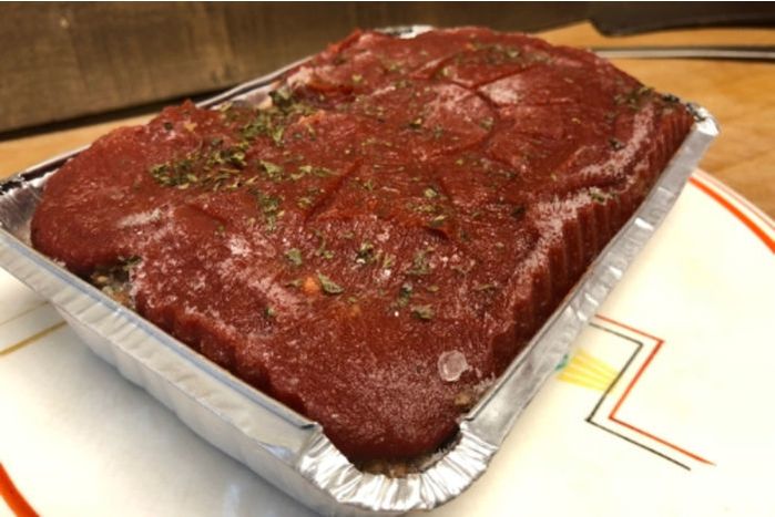 Beef, Pork, Bread Crumbs, Onion, Pepper, Egg, Salt, Spices, Tomato Paste, Ketchup, Brown Sugar, Spices