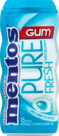 Mentos Gum, Wintergreen, with Green Tea Extract - 15 Pieces
