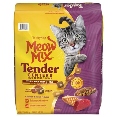 ., Whole Ground Corn, Chicken By-Product Meal, Corn Gluten Meal, Soybean Meal, Animal Fat (Preserved with Mixed Tocopherols), Whole Meat, Animal Digest, Phosphoric Acid, Calcium Carbonate, Tuna Meal (Preserved with Ethoxyquin), Corn Syrup, Glycerin, L-Lysine Monohydrochloride, Choline Chloride, Potassium Sorbate (Used as a Preservative), Salt, Titanium Dioxide (Color), Calcium Sulfate, Vitamins (Vitamin E Supplement, Niacin, Vitamin A Supplement, Thiamine Mononitrate, Riboflavin Supplement, D-Calcium Pantothenate, Pyridoxine Hydrochloride, Vitamin B12 Supplement, Menadione Sodium Bisulfite Complex (Source of Vitamin K Activity), Vitamin D3 Supplement, Folic Acid, Biotin), Caramel Color, Taurine, Mineral (Ferrous Sulfate, Zinc Oxide, Manganous Oxide, Copper Sulfate, Calcium Iodate, Sodium Selenite), Dicalcium Phosphate, Carrageenan, DL-Methionine, Potassium Chloride, Yellow 5, Lactic Acid, Red 40, Blue 2, Natural White Meat Chicken Flavor, BHA (Used as Preservative), Rosemary Extract.