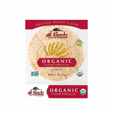 Mi Rancho Organic White Flour Tortillas contain organic wheat flour and are Non-GMO. These artisan tortillas, silky soft with tasty little toast marks perfect for delicious wraps or burritos. See why after just one taste, you'll discover pure tortilla joy. Organic Wheat Flour, Water, Organic Safflower Oil Contains Less Than 2% Of Each Of The Following: Cream Of Tartar, Sea Salt, Organic Whole Wheat, Organic Cultured Wheat Starch, Organic Cane Sugar, Baking Powder (Sodium Acid Pyrophosphate, Baking Soda, Non-Gmo Corn Starch, Monocalcium Phosphate), Sunflower Lecithin, Organic White Distilled Vinegar, Organic Maltodextrin, Organic Guar Gum.