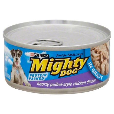 Mighty Dog Food for Small Dogs, Hearty Pulled-Style Chicken Dinner, in Gravy - 5.5 Ounces