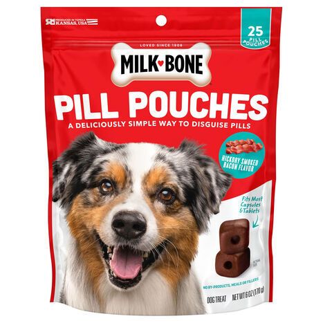 Milk-Bone Pill Pouches Hickory Smoked Bacon Flavor Dog Treat - 25 Pouches