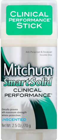 Mitchum Anti-Perspirant & Deodorant, Smart Solid, Invisible Stick, Unscented - 2.5 Ounces