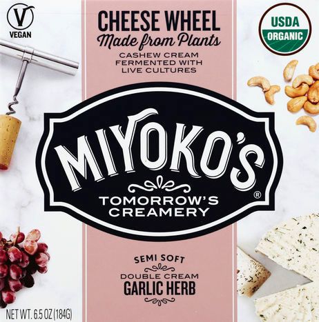 Miyokos Creamery Cheese Wheel, Semi Soft, Double Cream Garlic Herb - 6.5 Ounces