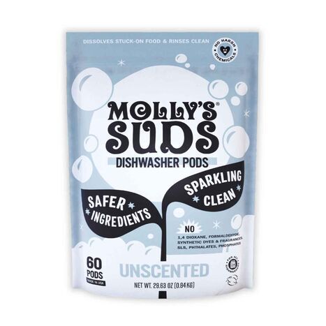 • Simple and effective, Molly’s Suds Dishwasher Detergent Pods are free from Ethoxylates, Parabens & Phthalates, and Synthetic Dyes or Fragrances.