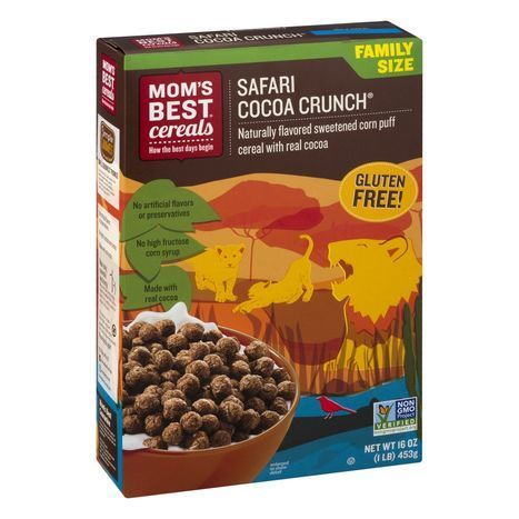 Mom's Best Cereal, Sweetened Corn Puff, Gluten Free, Safari Cocoa Crunch, Family Size - 16 Ounces