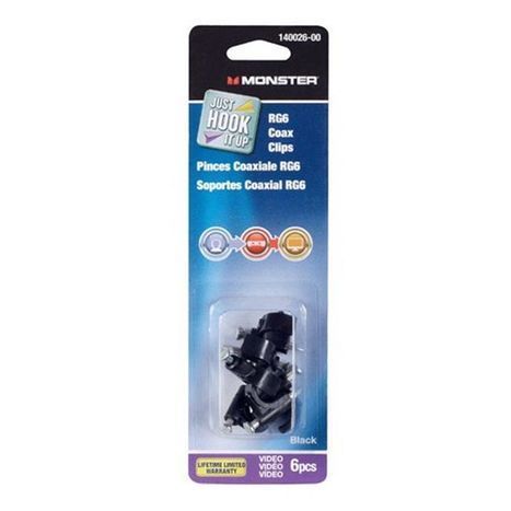 Monster Jhiu Black RG6 Coax Cable Clips - Pack of 6