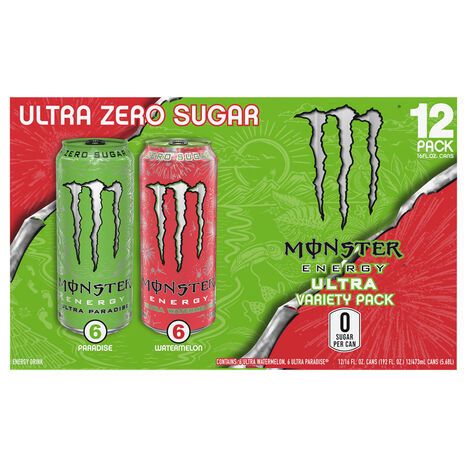 Monster Ultra Zero Sugar Paradise/Watermelon Energy Drink Variety Pack - 12 x 16 Fluid Ounces