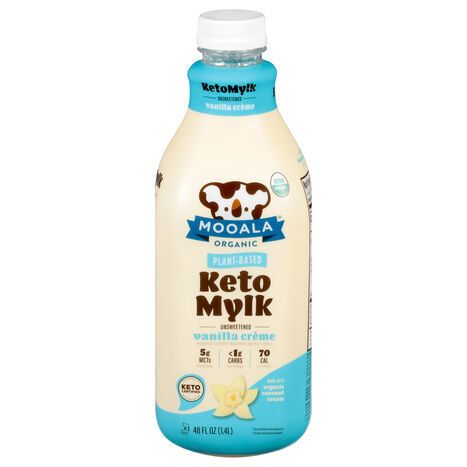 Made with organic coconut cream. Naturally flavored with other natural flavors. 5 g MCTs per serving. Less than 1 g carbs per serving. 70 cal per serving. USDA organic. Certified organic by Oregon Tilth. This product is keto certified. ketocertified.com. Dairy-free. Gluten-free. Lactose-free. Soy-free. Vegan. Each servings contains: Vitamin D (2 mcg) & vitamin K2 (12 mcg). No sugar added (Not a low-calorie food. See nutrition facts for information on calorie content) Non-GMO. Plant-based. Pronounced like koala! (moo-ah-luh). Meet Mooala: He has spots like a cow but lives in a tree. In fact, he is almost exactly like a regular koala, except he picks nuts, seeds & fruit from his favorite trees, and blends them into the most delicious, organic plant-based beverages in a secret Mooala factory. Then, he leaves bottles at your favorite grocery store, hides and ways for you to pick them up! (Sometimes he follows you home)! Vanilla Creme Keto Mylk - doesn't it sound like a cloud your Keto head could take a nap on? Rest easy with less than 1 g carbs and 5g MCTs per serving in this silky. creamy deliciousness. It'll be your new go-to for shakes. baked goods. or just by the glass after a refreshing workout. Did we mention it tastes like vanilla frosting? Carrageenan free. Texas owned & operated. moaala.com. Stay in touch! We're warm & fuzzy: Facebook; Instagram (at)mooala_koala. Facebook MooalaBrands. Visit moaala.com for more! Koalas recycle and you should too! (Please remove plastic wrap before recycling).